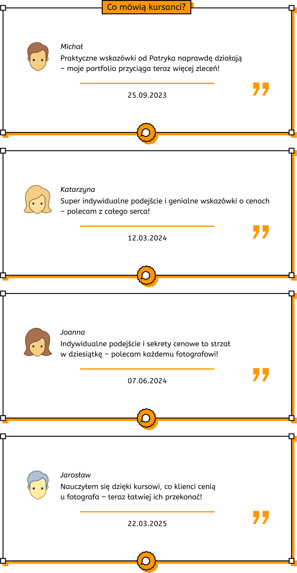 Skorzystaj z ponad 5 lat praktyki i spersonalizowanych wskazówek od fotografa.
